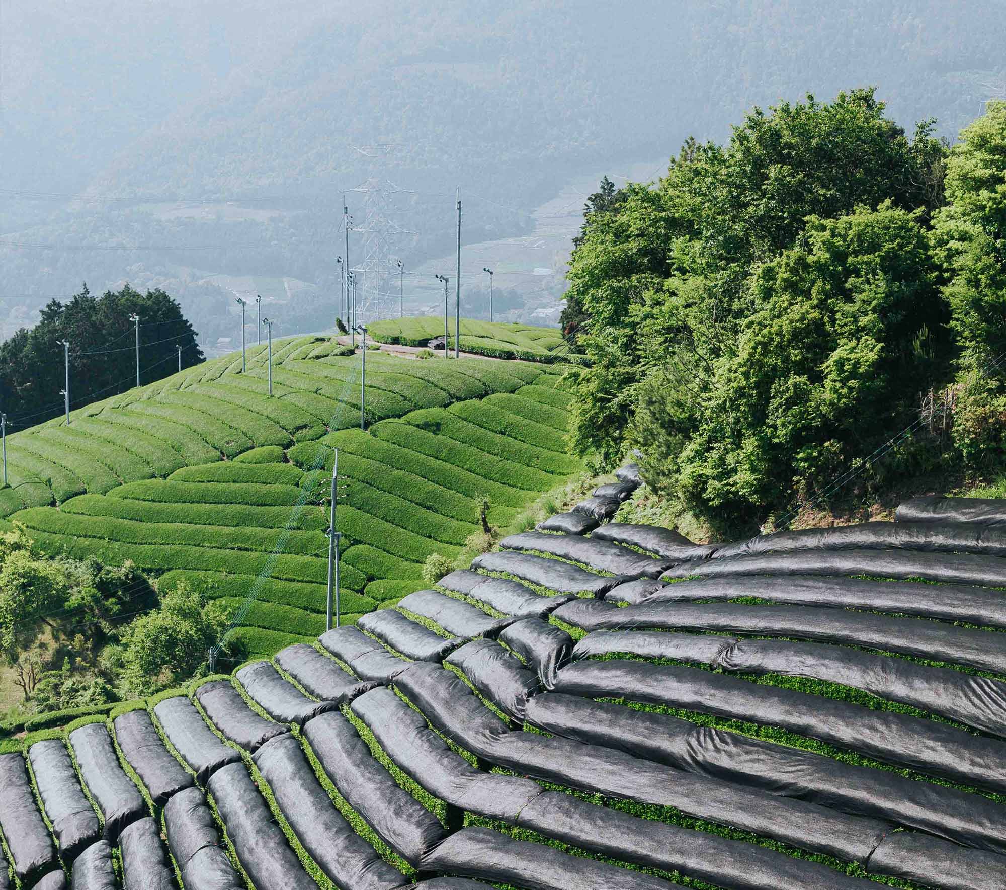 Entre deux et quatre semaines avant la récolte, nos théiers sont couverts.